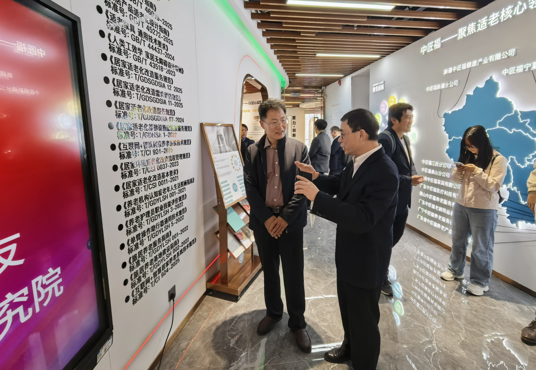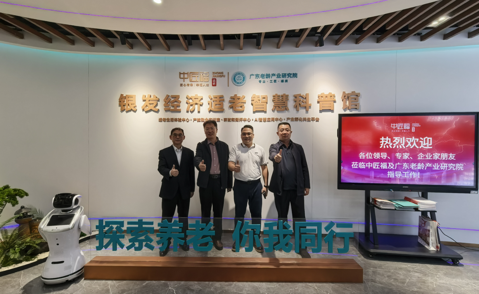 双方围绕康养产业发展趋势、人才培养创新、科研项目合作等内容进行交流。狄勇院长等在古武秘书长陪同下,实地参观了由广东老龄产业研究院发起,中匠福精心打造的银发经济适老智慧科普馆。
