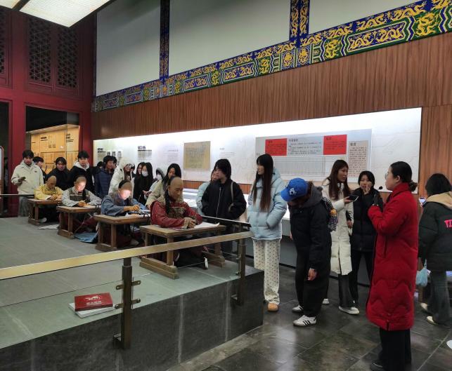 2025年11月18日下午,康养工程学院24级旅游管理专业全体学生在张荣娟、李海霞两位老师的带领下,赴中国科举博物馆开展以“挖掘科举文化内涵,赋能节庆活动策划”为主题的“行走的文旅课堂”实践活动。本次活动紧紧围绕“知行合一”的核心理念,通过沉浸式体验与理论结合,帮助学生将课堂知识转化为实践能力,为传统文化与现代旅游的融合创新提供新思路。