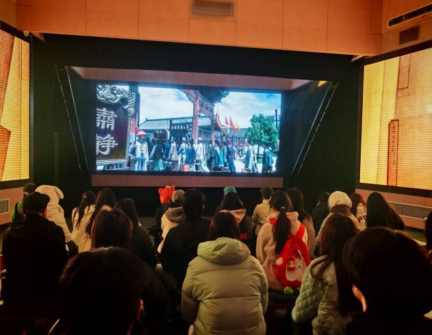 中国科举博物馆依托中国古代最大的科举考场——江南贡院遗址而建,是一座系统展示科举制度与文化的专题博物馆。其展厅沉入地下,外墙由瓦片覆盖,内部以书筒砌成,充满书香气息。当师生们一踏入负一层的迎宾大厅,巨幕上再现了“村童闹学图”“贡院赴考图”以及“号舍百态图”等场景,将大家瞬间拉回古代学子从启蒙苦读到金榜题名的漫长历程,提供了极具冲击力的文化体验。