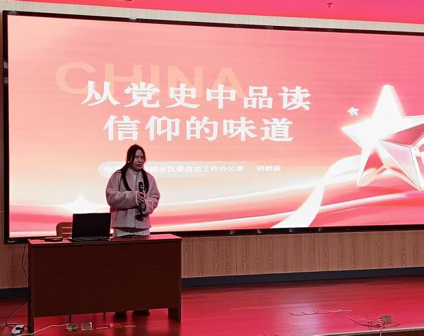 为引导青年学生从党史中感悟信仰力量,传承共产党人精神谱系,12月2日(本周二)18:00-19:30,康养工程学院在溧水校区图书馆一楼报告厅成功举办《从党史中品读信仰的味道》专题讲座。本次讲座特邀溧水区党史工作办公室阴树琪老师主讲,高俊老师主持,200余名学生代表现场聆听学习。