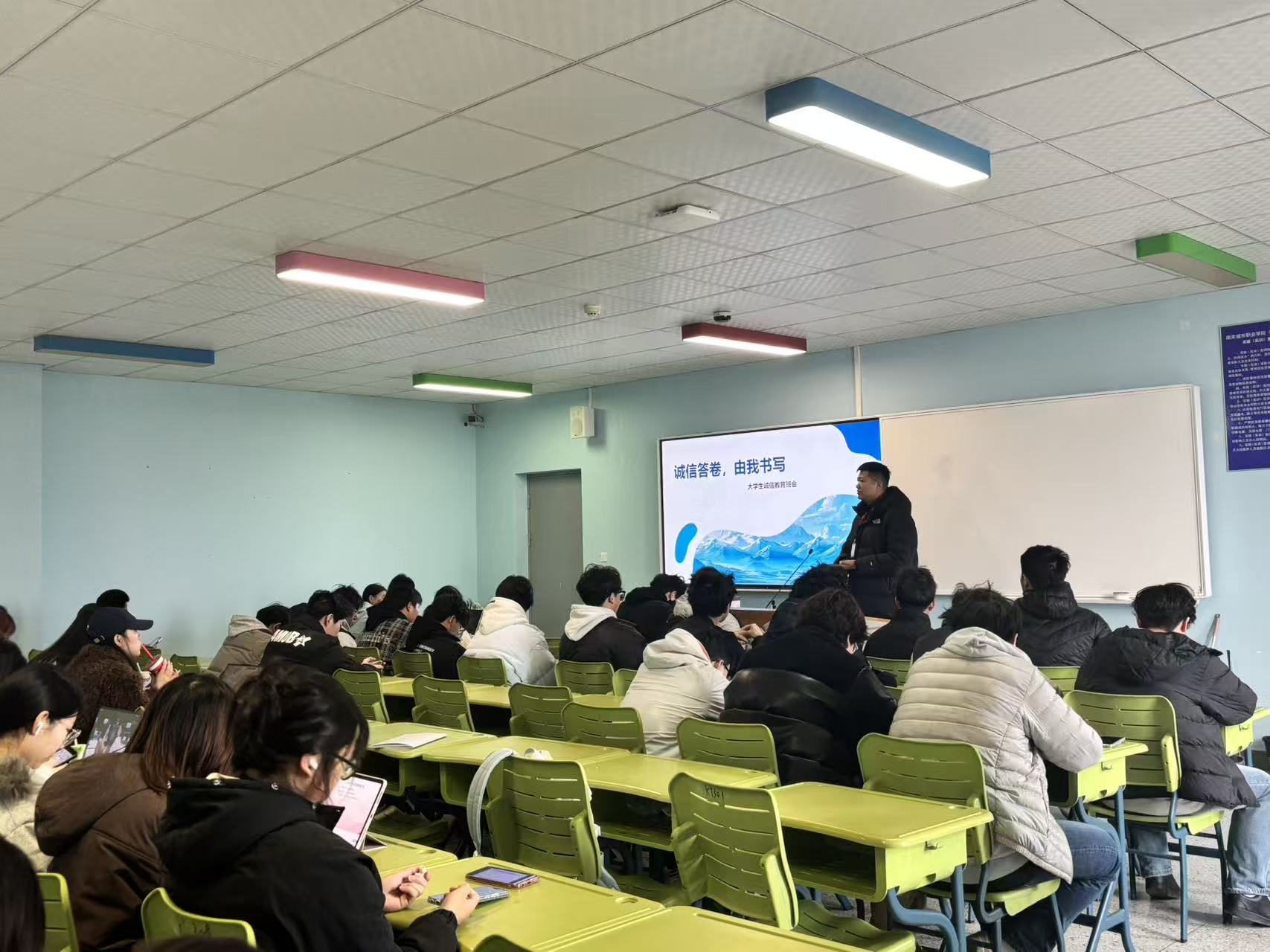 此次主题班会的召开,既为同学们厘清了考试全流程的注意事项,也筑牢了诚信应考的思想根基,为康养工程学院营造风清气正的考试氛围奠定了坚实基础,也为24级学子顺利迎战英语四级考试提供了有力保障。