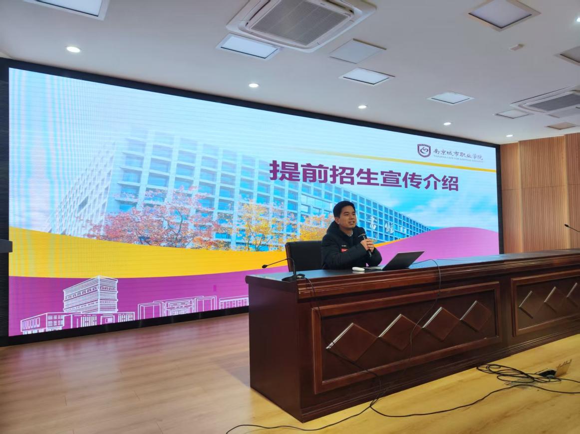 为进一步做好我校2026年提前招生宣传工作,不断提高生源质量,根据学校招生工作总体部署,我院王林老师于12月25日赴镇江句容市实验高级中学开展2026年提前招生政策宣讲活动。此次活动旨在向学生全面介绍我校办学特色、专业优势、升学就业前景以及提前招生政策相关内容,助力学生科学规划升学路径。
