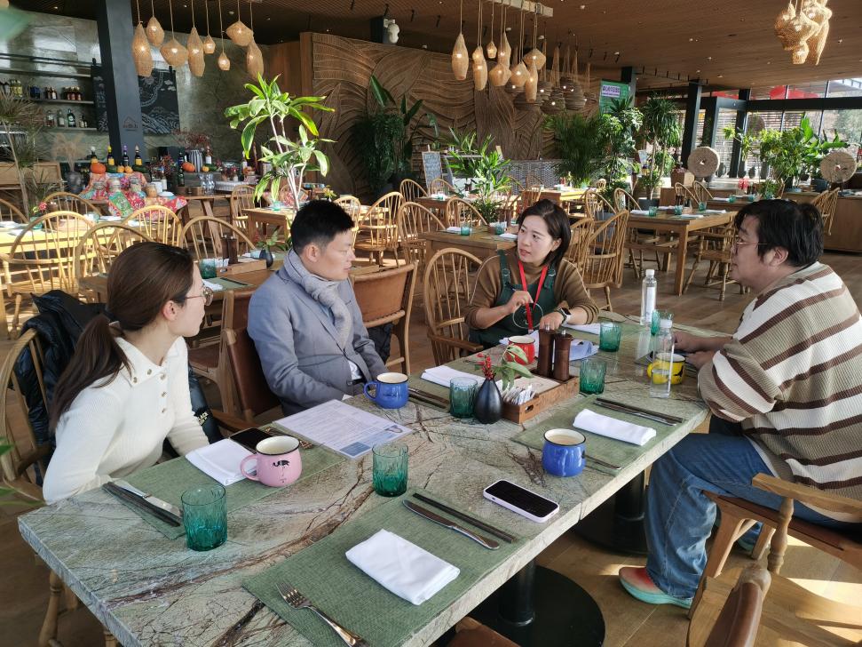 本次实践活动同步推动校企合作商谈。活动期间,李海霞老师、甘力老师与裸心岭姚海天总经理、赵燕总监围绕校企协同创新班项目开展交流,就人才培养方案优化、实训基地共建、实习就业岗位供给等核心议题达成初步共识。同时,双方针对已启动的度假村直播运营合作推进事宜进行细化落实,明确计划近期召开首次专项会议,敲定后续合作分工与实施细则,为校企资源共享、优势互补、协同发展筑牢坚实基础。