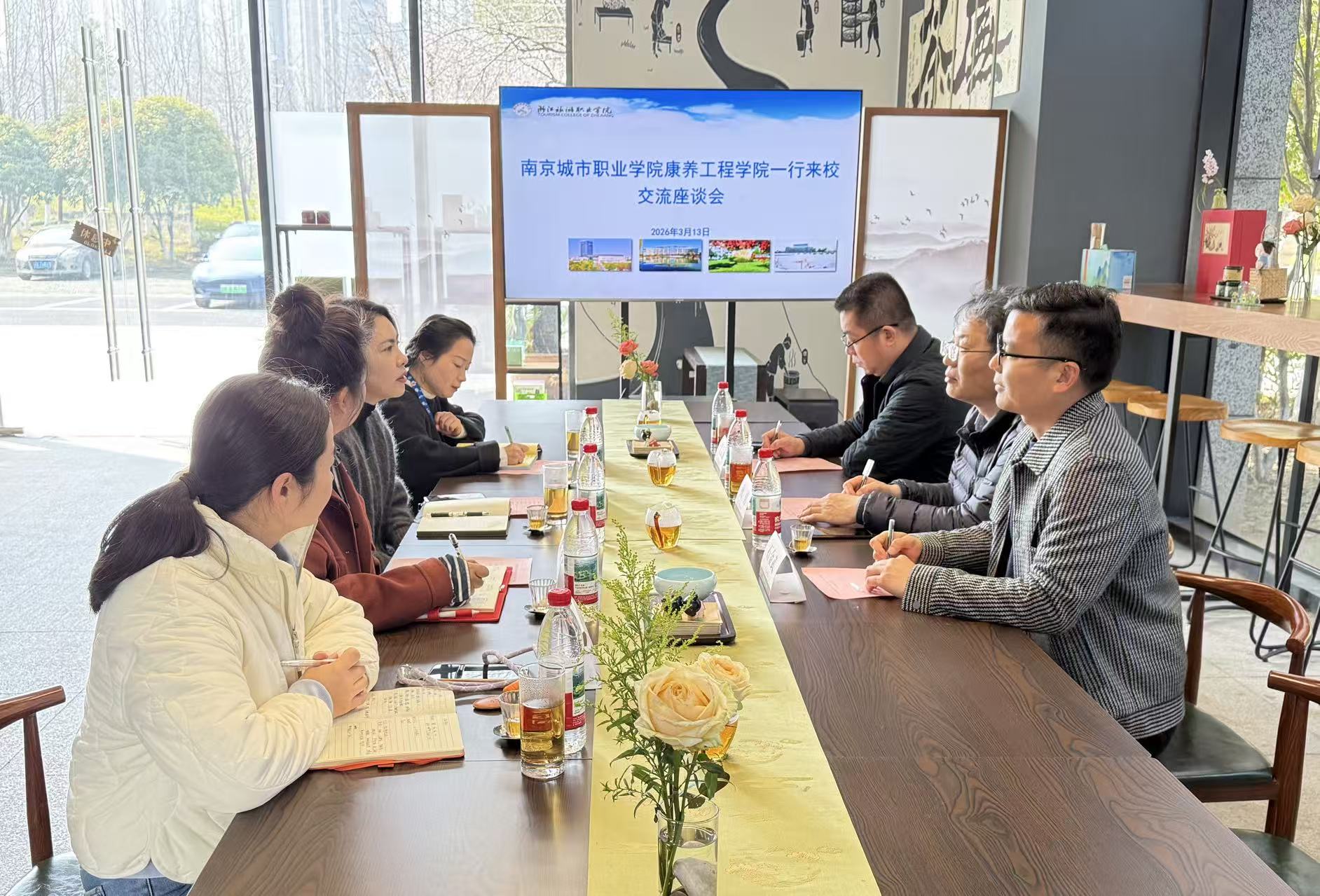 为深化产教融合、校企合作,推进新街口校区17楼项目建设,3月13日,康养工程学院党总支书记/院长狄勇、党总支副书记/副院长吴良勤、康养康育教研室主任石金武到浙江旅游职业学院康养与休闲学院进行专项调研,该院党总支书记雷明化、副院长张晶等热情接待康养学院一行。