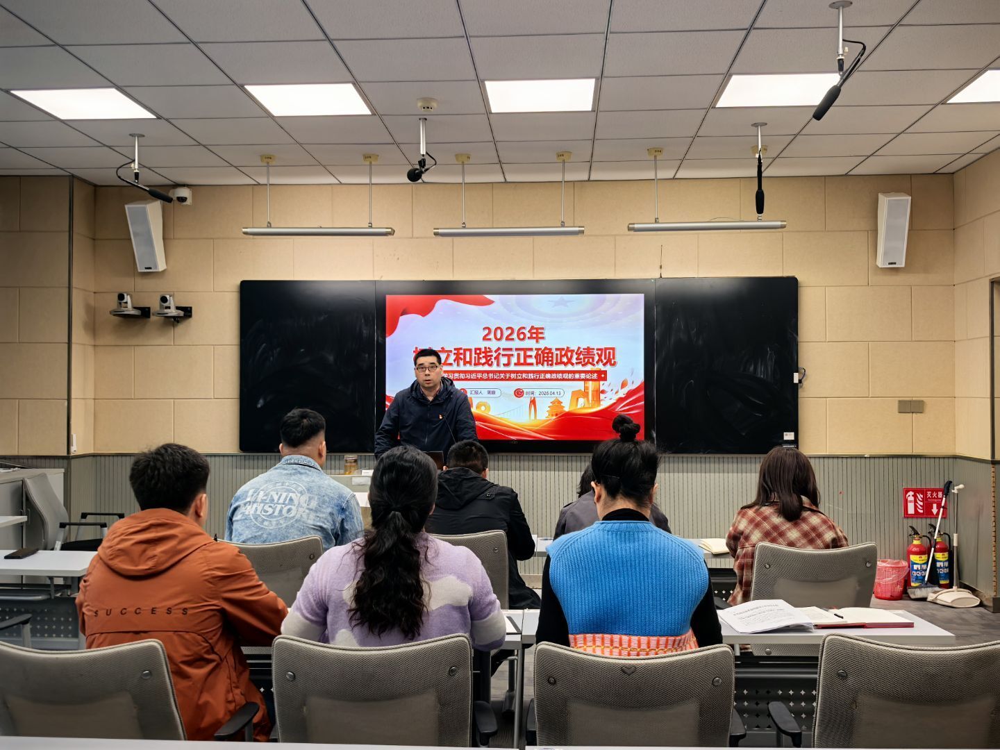 为深入学习贯彻习近平总书记关于树立和践行正确政绩观的重要论述,扎实推进学工队伍思想政治建设,2026年4月13日,康养工程学院党总支第二党支部在敬业楼206教室开展“树立和践行正确政绩观”专题党课。本次党课由康养工程学院党总支副书记、副院长周康同志担任主讲,全体辅导员参与学习,共同感悟思想伟力,明晰育人工作方向。